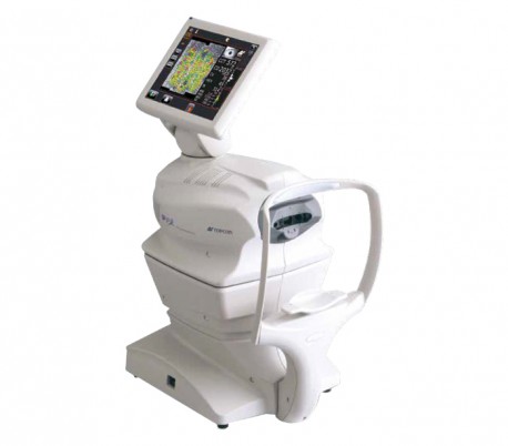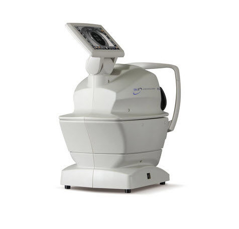 Il TRK-2P abbina refrattometro, cheratometro, tonometro senza contatto e pachimetro in un unico strumento compatto.